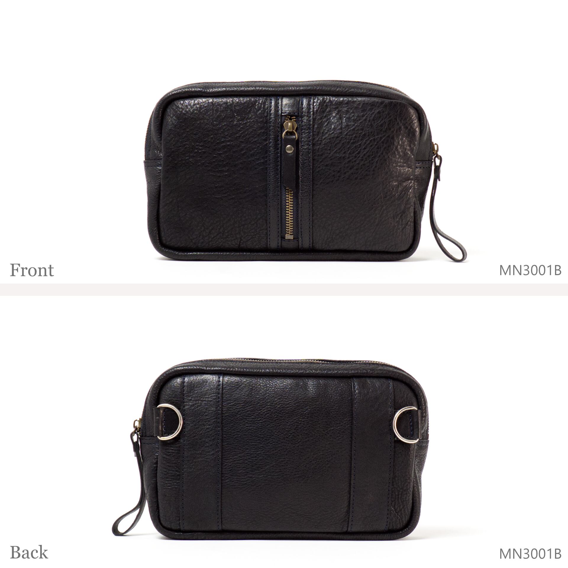 大きめのベルトがバッグと調和する一体感のあるデザイン。長さを調節してボディバッグに、またベルトを外せばポーチに変身も。使い込むほどにツヤが上がり、比較的早めに革の経年変化が楽しめます。