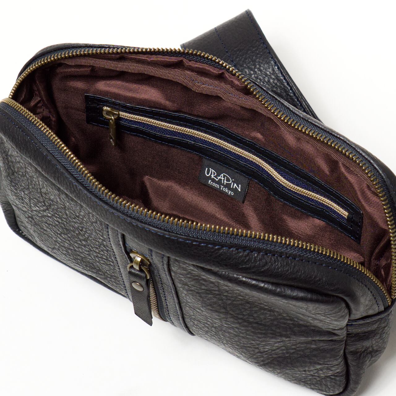 シュリンク加工を施し、丹念にシボを出した姫路産の本牛革を使用。ヌメ革の特徴であるナチュラルな表情で、程よいツヤ感のあるショルダーバッグに仕上がっています。