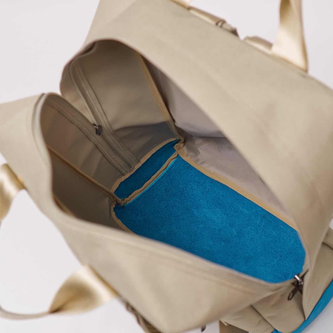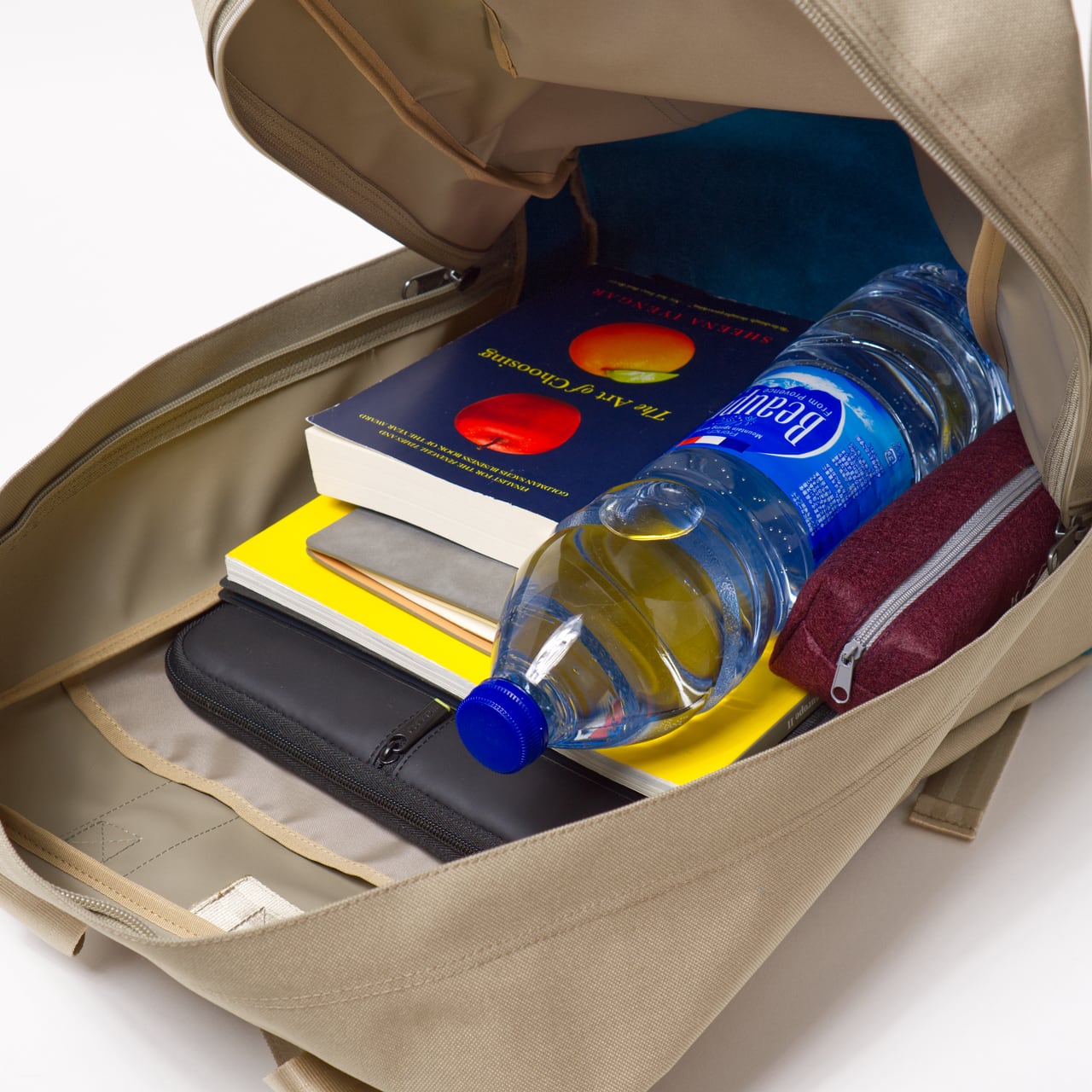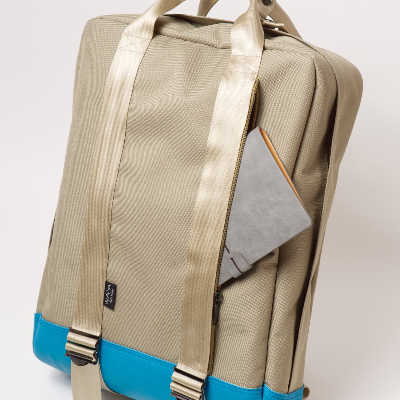 たっぷりざっくり入る収納力で、普段使いでもレジャーでも使用できる「ブルーバックパック」。いろいろなシチュエーションでファッションを楽しめます。
