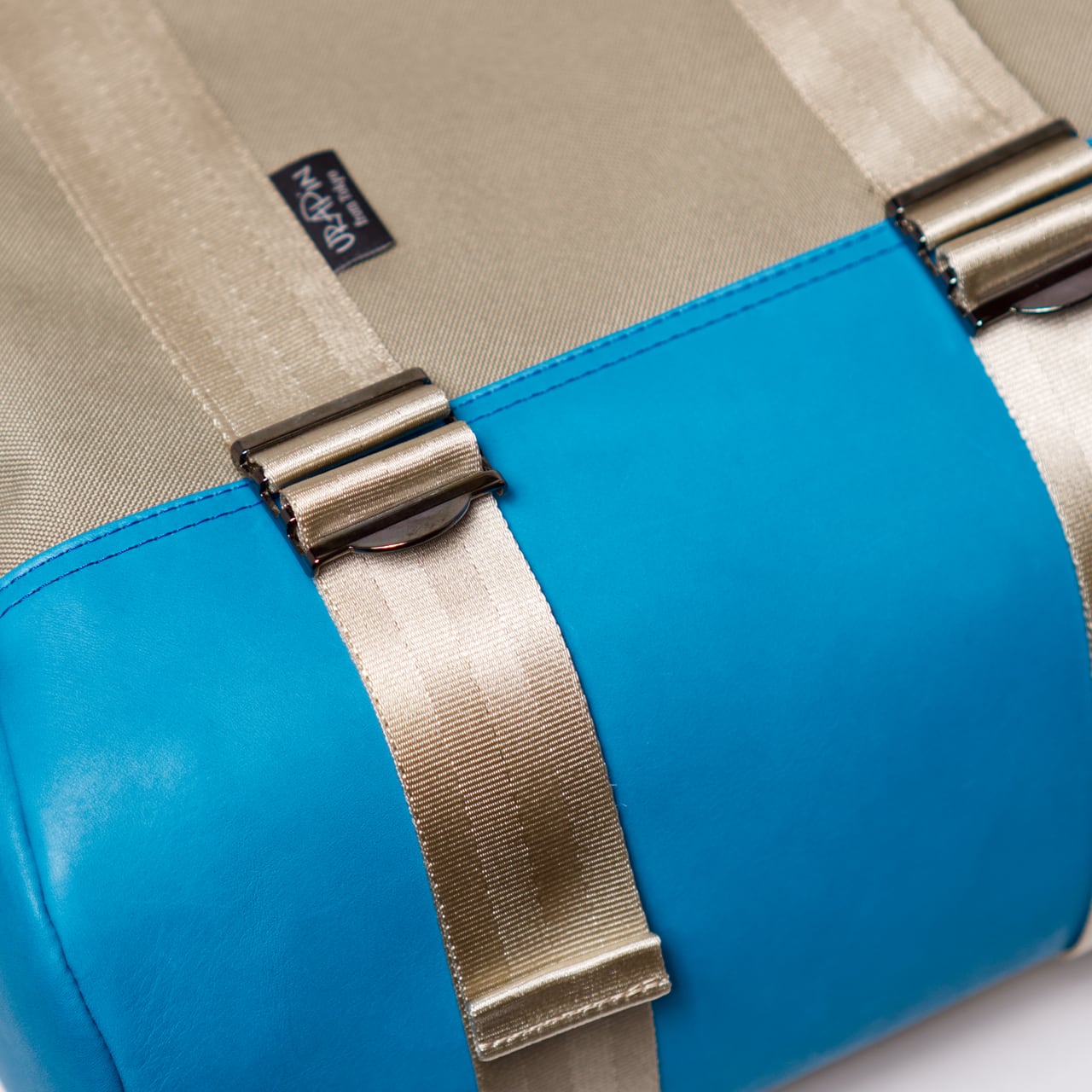 ボトム部に北米産の最高級の本牛革を使用。グローブレザーの美しいブルーと、ナイロン製ベルトの高級感のある光沢が、所有感をくすぐります。