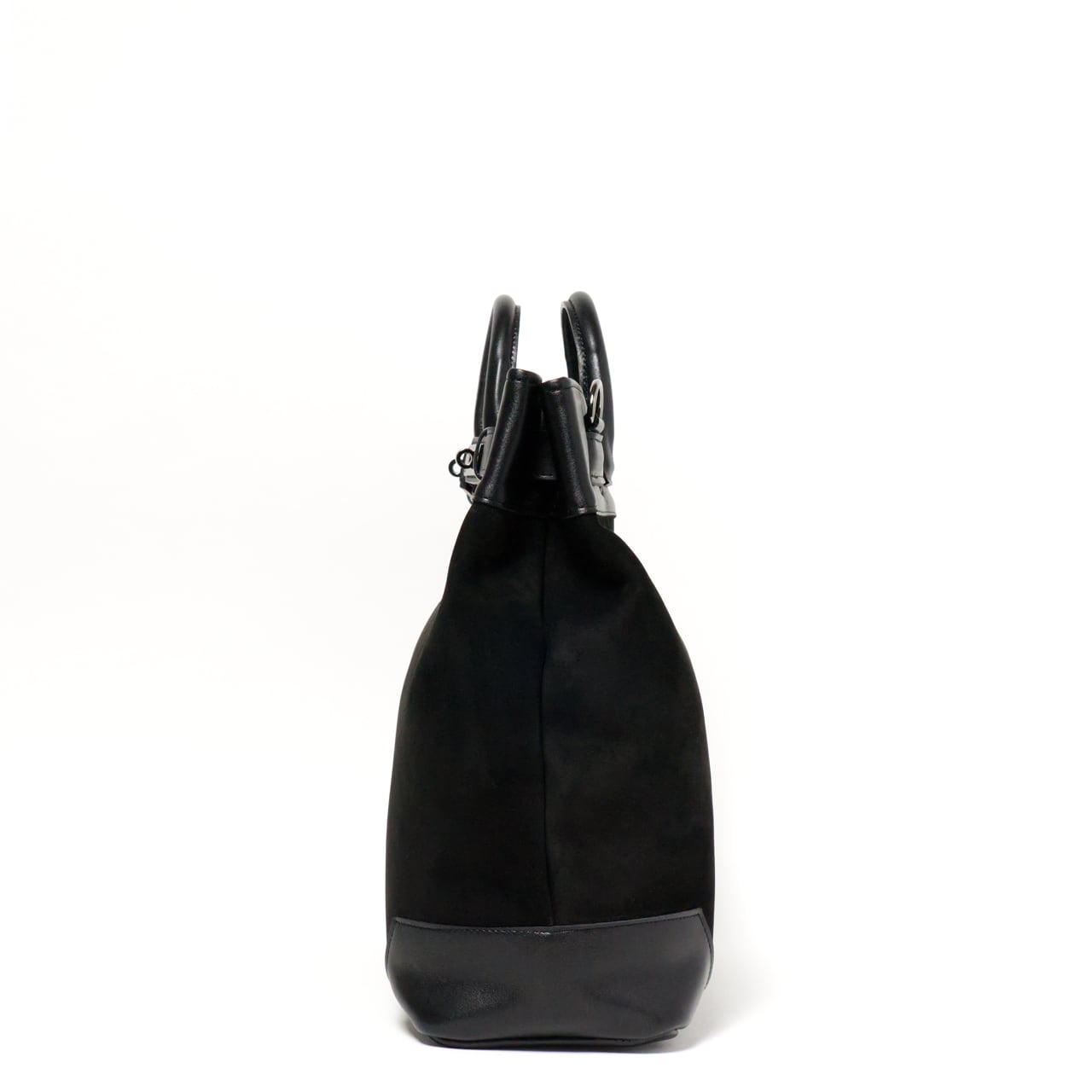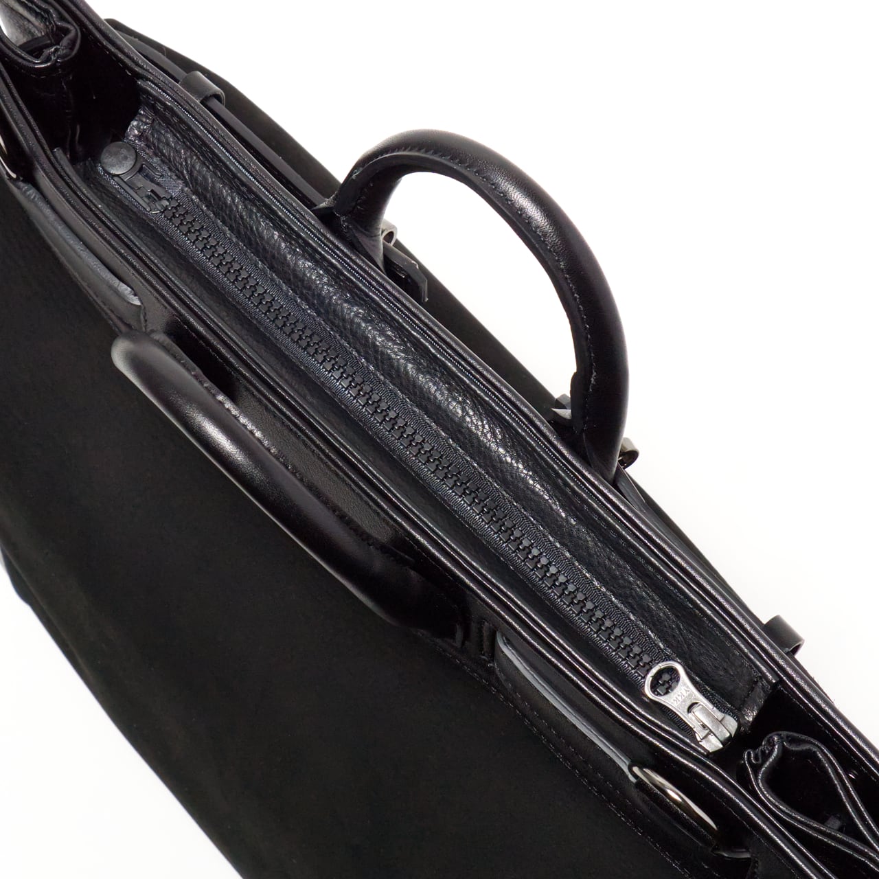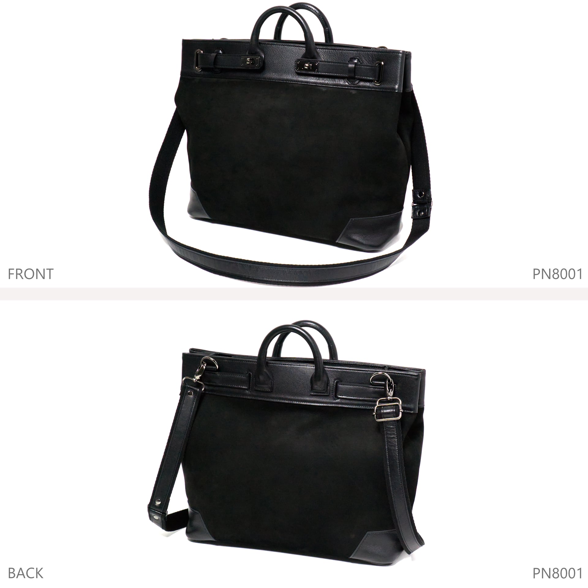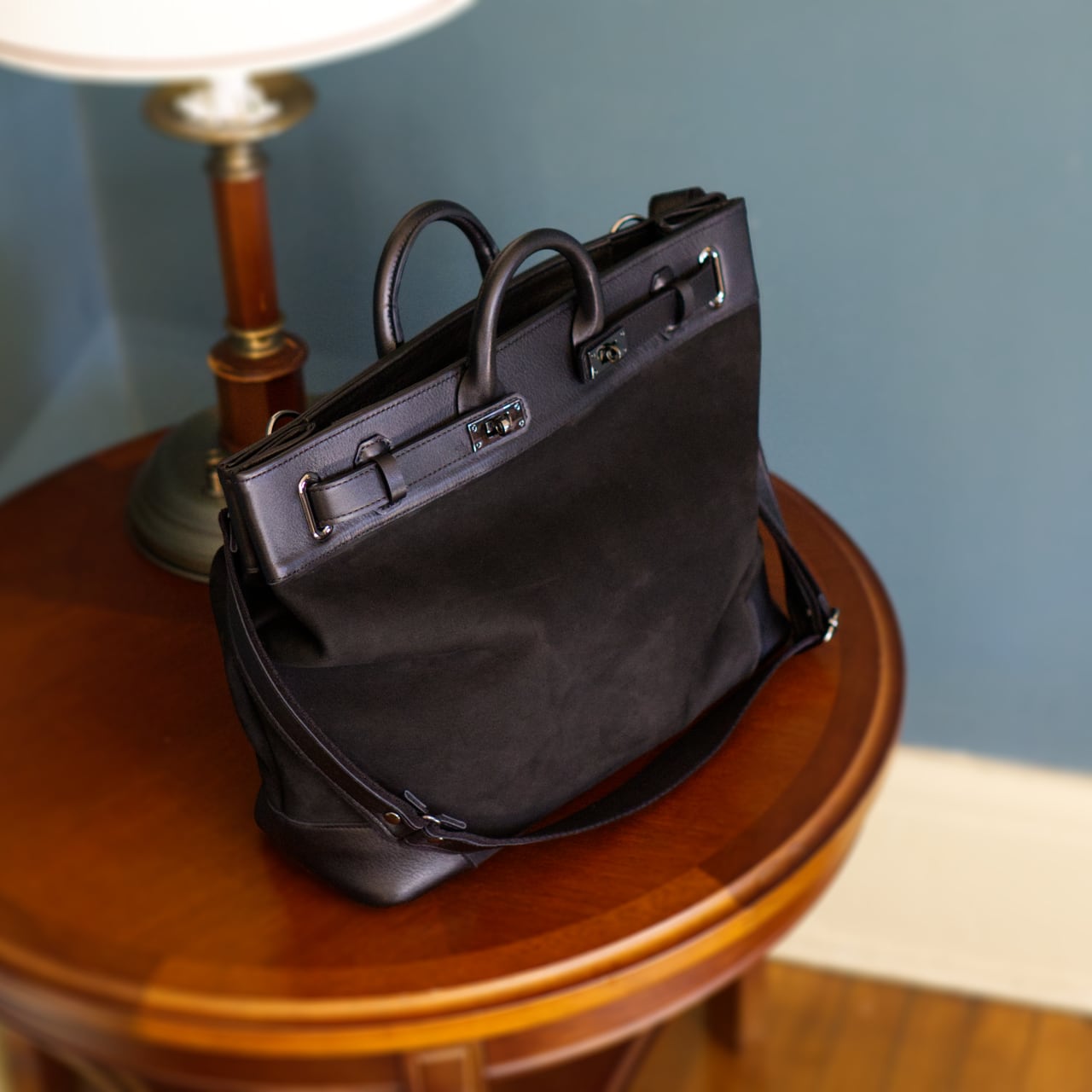 艶のある上質なスムースレザーと、なめらかな感触が魅力のヌバックレザーを使用した2ウェイショルダーバッグ。高級感と落ち着きのあるブラックカラーが、ビジネスシーンや友人とのお出かけなど、ちょっとお洒落したい場面で活躍します。